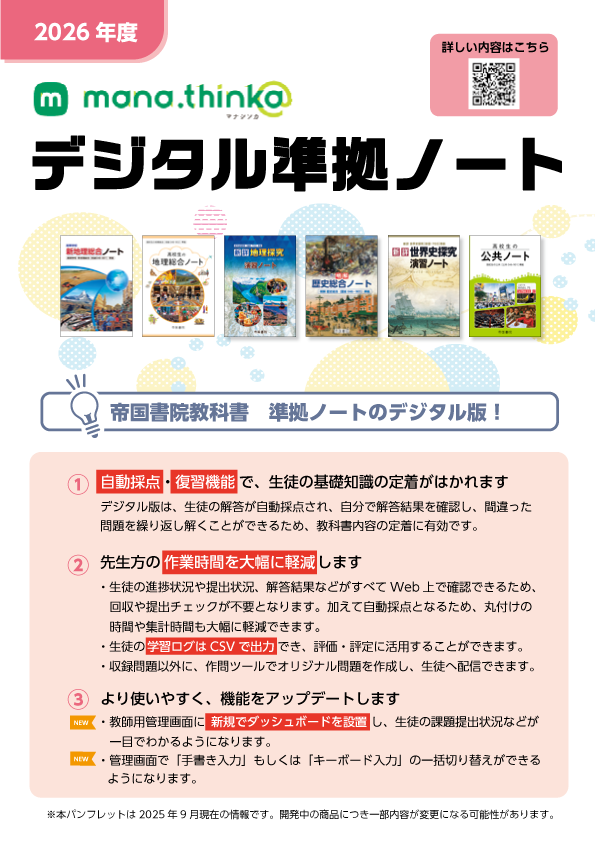 教科書の準拠ノートをタブレット用に再構成!デジタル版だけの「見方考え方問題」も!