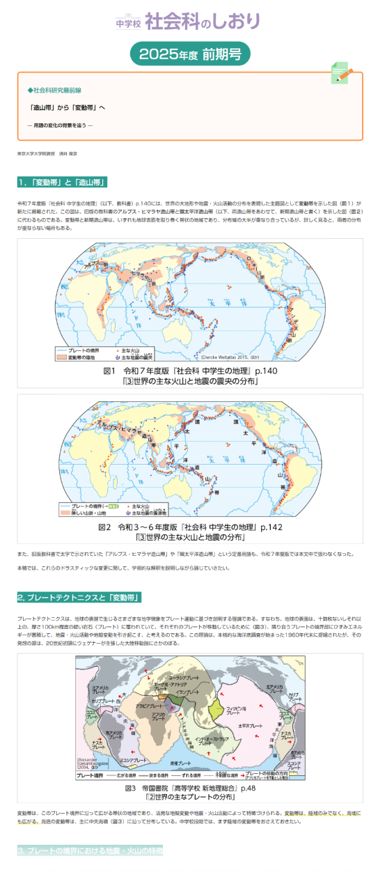 現在小学校向け記事として配信している「小さな地図活用」の中学校版です。地理、歴史、公民において地図帳を活用するアイデアをお届けいたします。