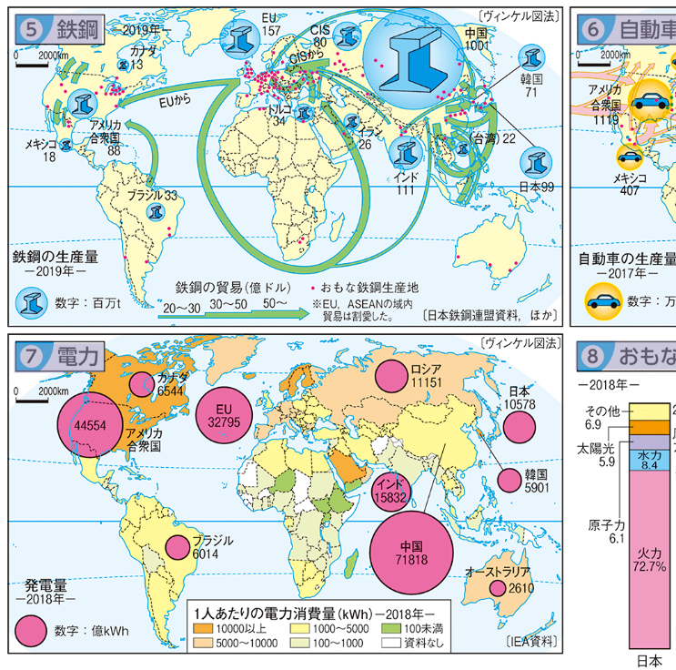 イラスト入りの鳥瞰図を3つ掲載(中国、ヨーロッパ、北アメリカ)