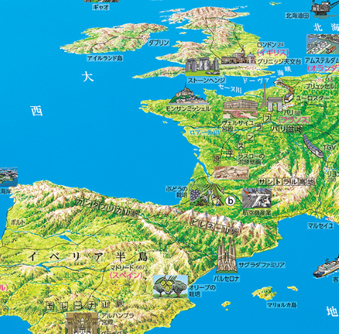 イラスト入りの鳥瞰図を3つ掲載(中国、ヨーロッパ、北アメリカ)