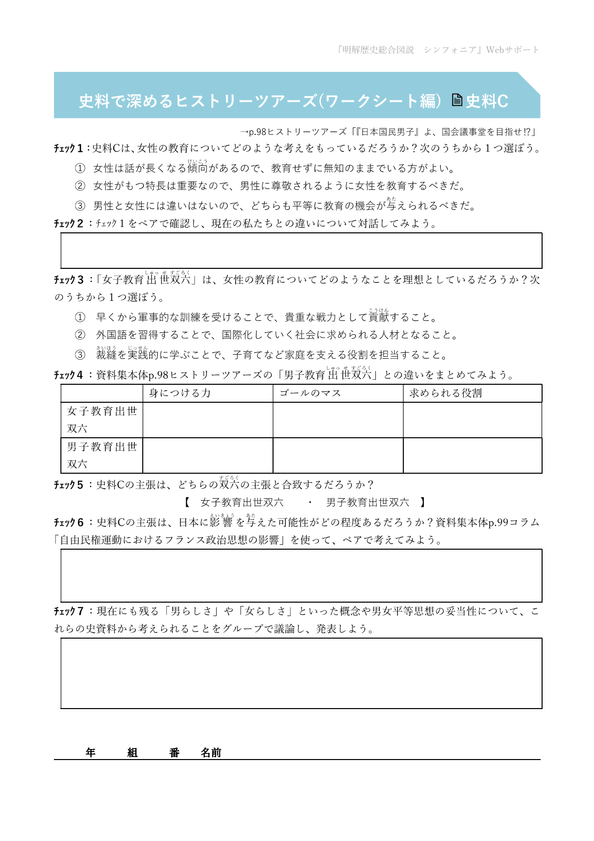 ペラ解答 | 「ヒストリーツアーズ」「…・…の視点から振り返ろう」教師・生徒用解答付 |