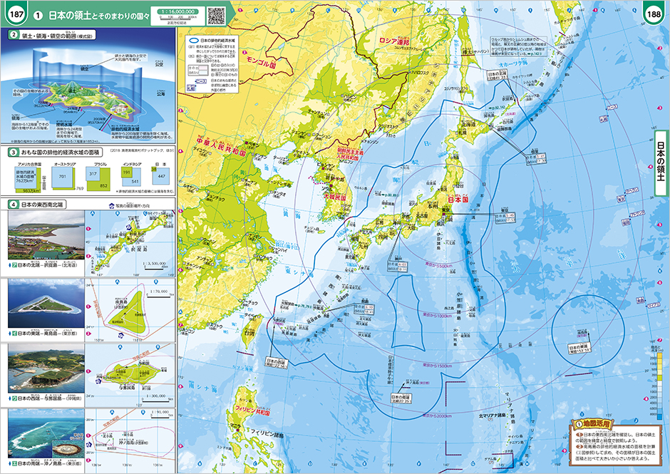 日本の領域(領土・領海・領空)についても、わかりやすく示し、正しい知識を身につけることができます。