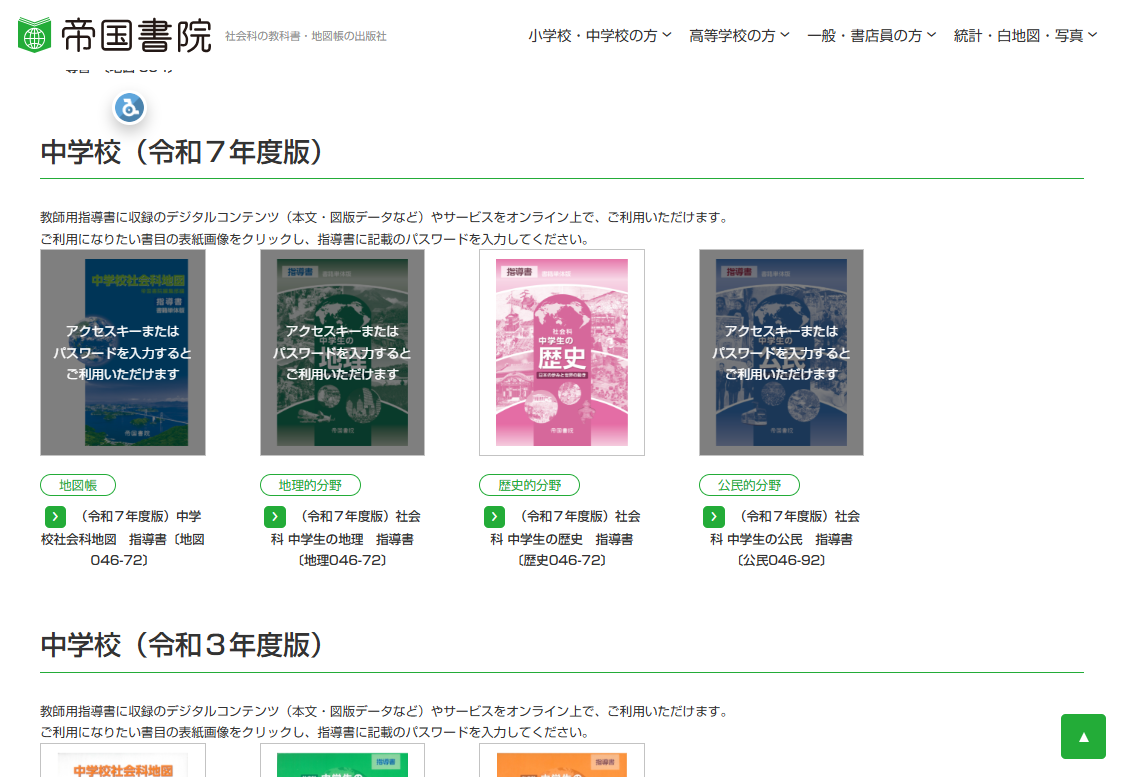 ※高等学校の「指導書Webサポート」及び「資料集Webサポート」につきましては利用方法に変更はございません。